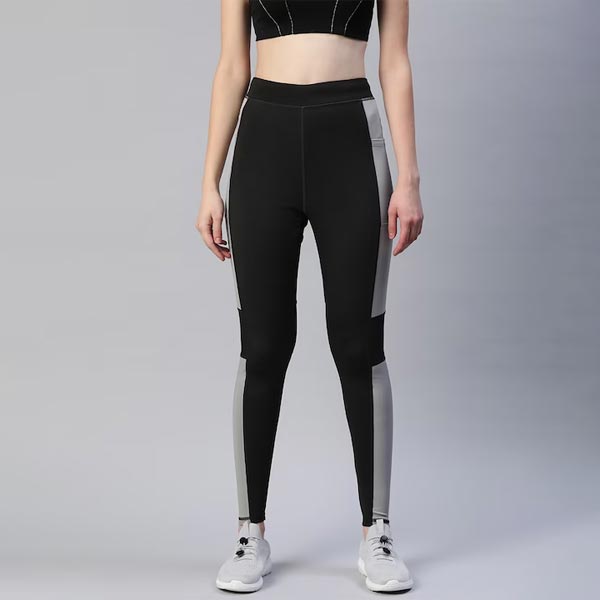 Women Black & Grey Colourblocked Rapid Dry Tights